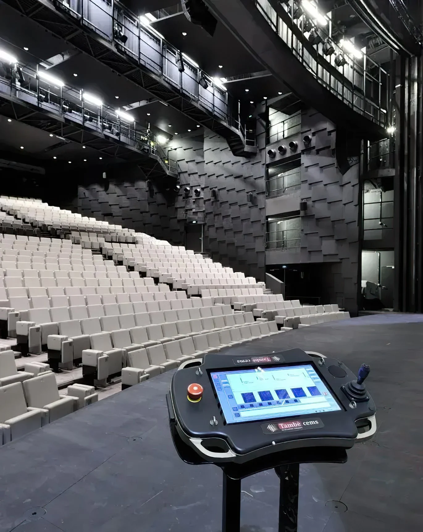 Le pupitre principal, filaire, est positionné sur scène. Il intègre deux écrans et deux joysticks paramétrables (assurant également la fonction « homme mort ») pour effectuer les manipulations de base (sélection de motorisations, visualisation, mouvements manuels), enregistrer et restituer les mouvements de la machinerie.